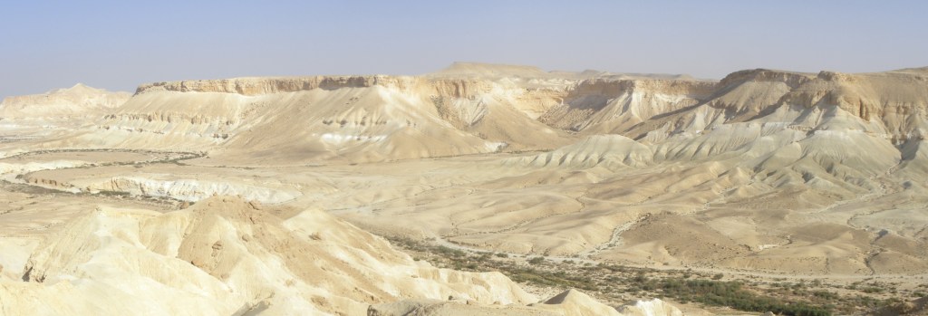 Below you will find a picture of the Wilderness of Zin. It’s not my picture. I hope you can get a feel for the vast desert that surrounds you as you stand in this place. On my first trip to Israel, every day, we would jump off the bus wherever it stopped and just follow our guide. We never really knew where we were or what we would see. If I remember correctly, we had been hiking in this area of Israel the day before and so walking or hiking in these conditions or surroundings wasn’t totally of-setting.
